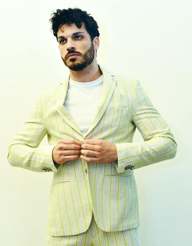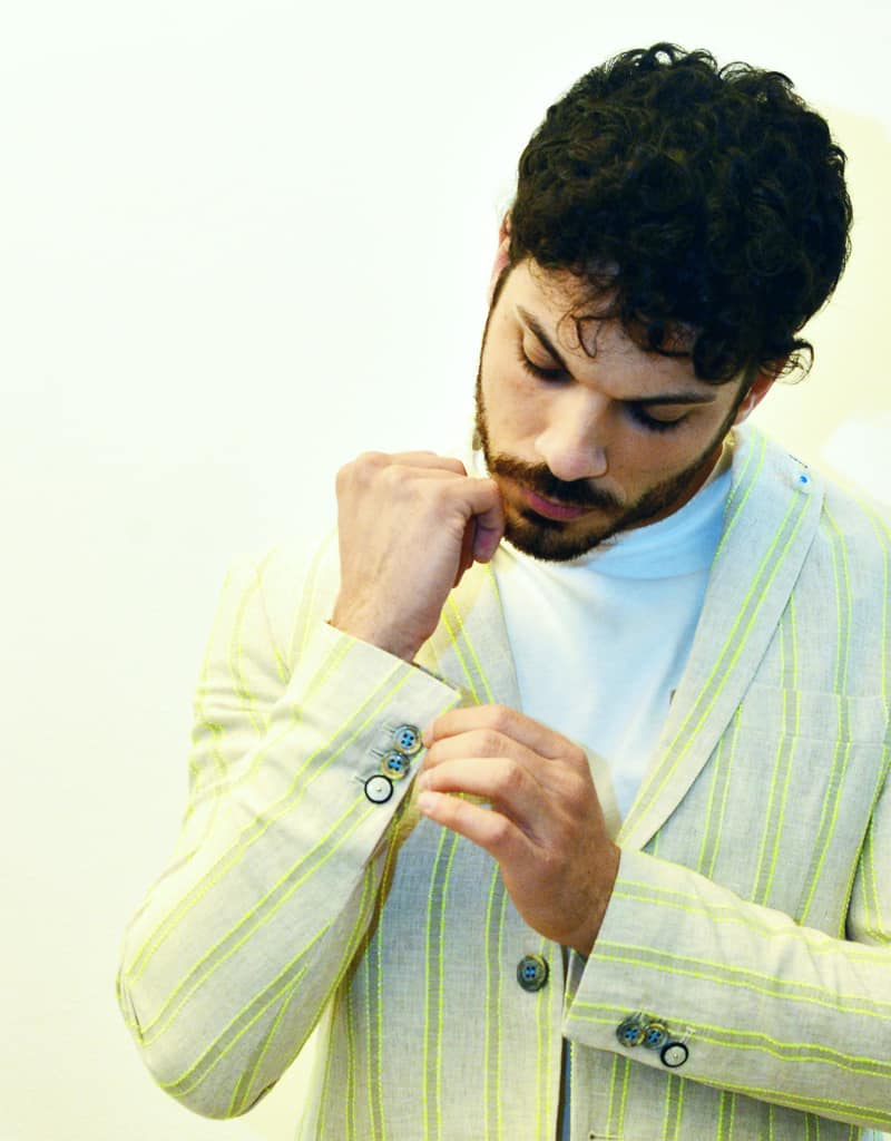 Giacca in tinta naturale beige con righe giallo fluo