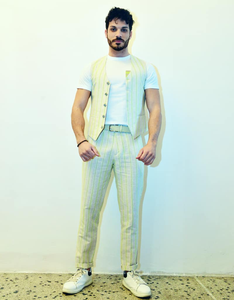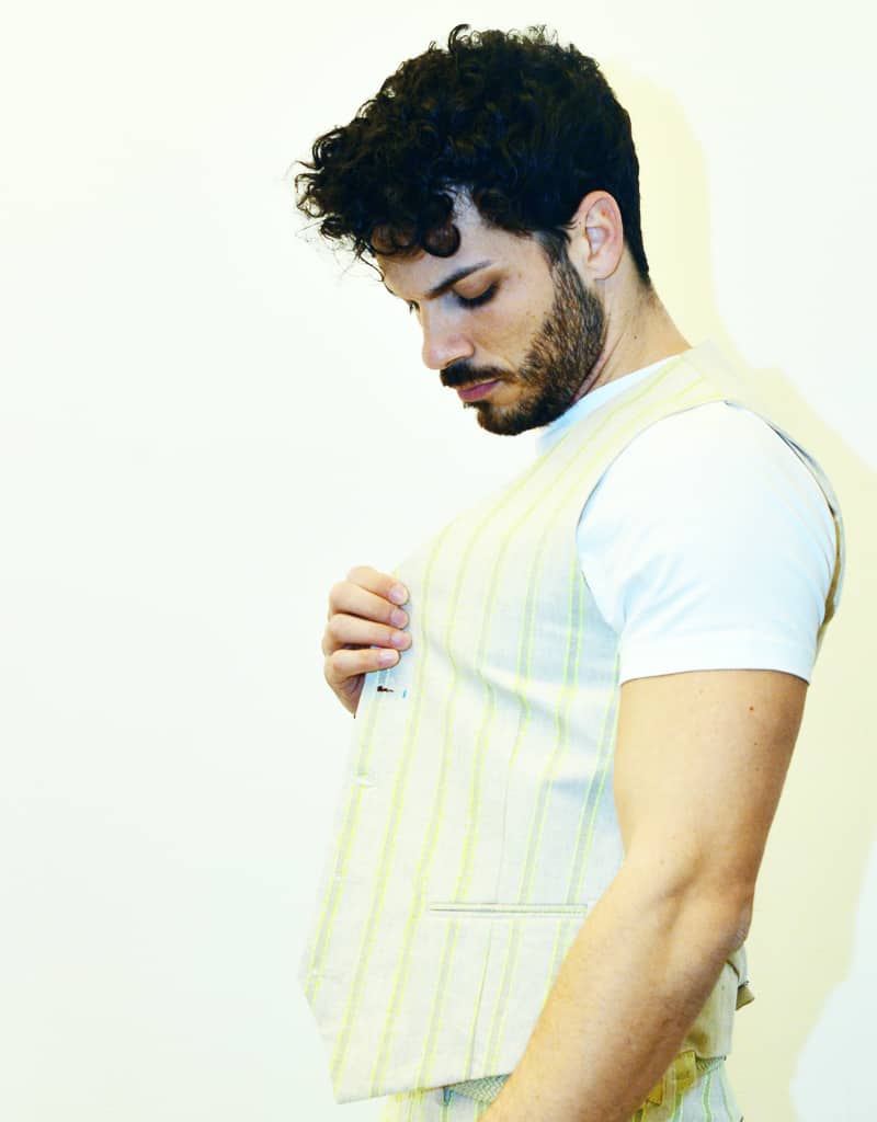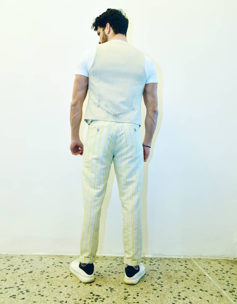 Gilet con bottoni effetto panciotto color sabbia con righe giallo fluo