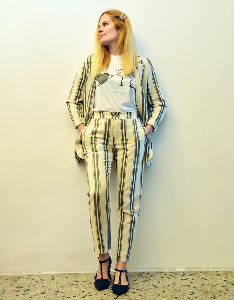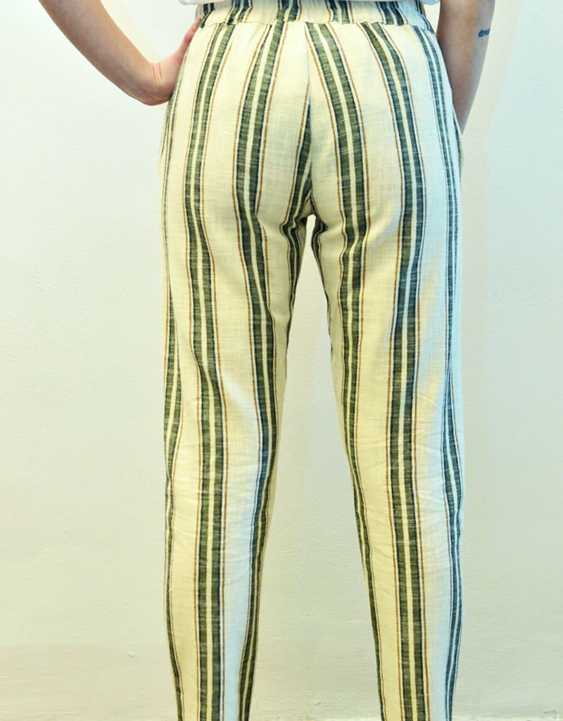 Pantalone in lino rigato con vestibilità morbida