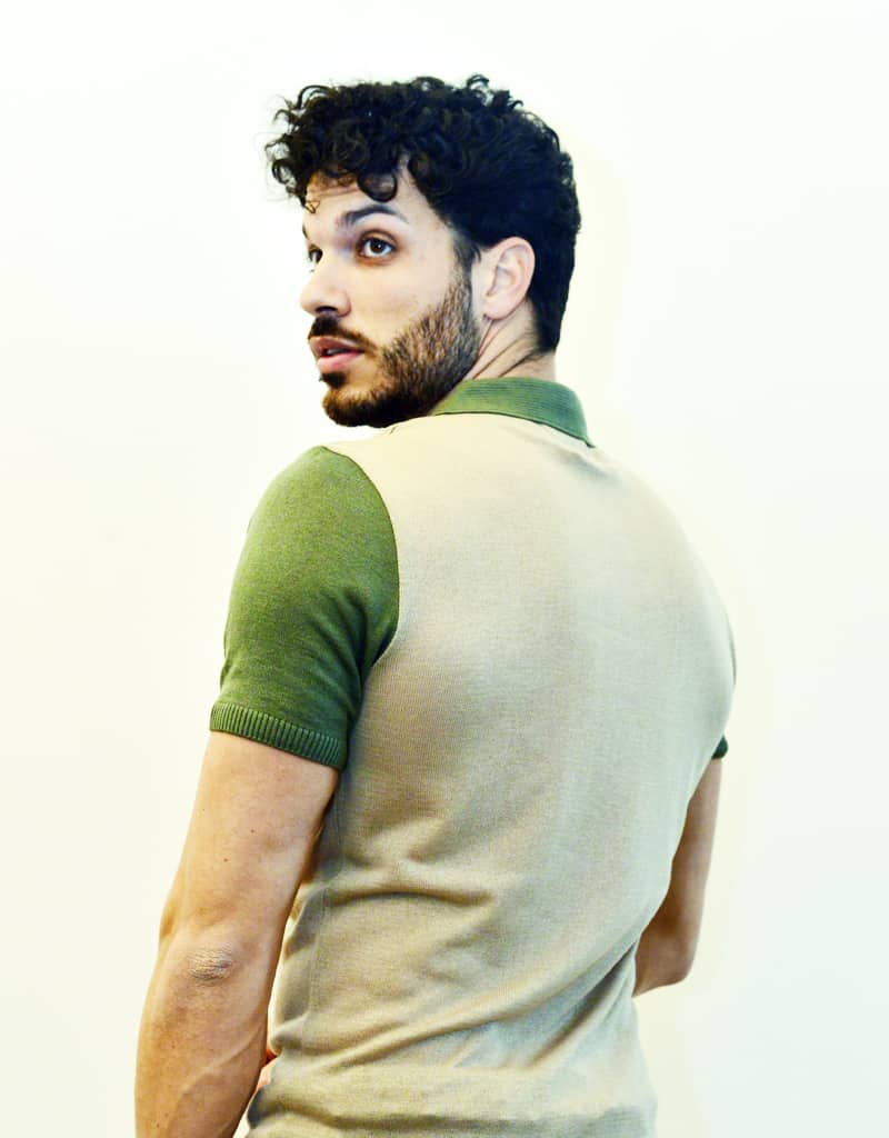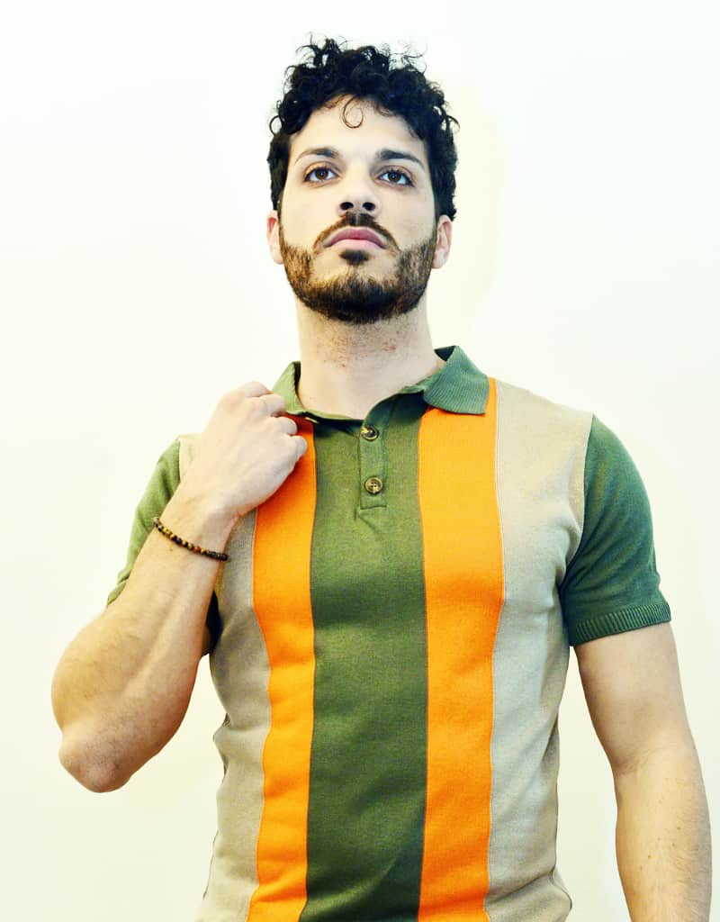 Polo mezza manica fondo verde militare e sabbia. Rigata arancio con 3 bottoni