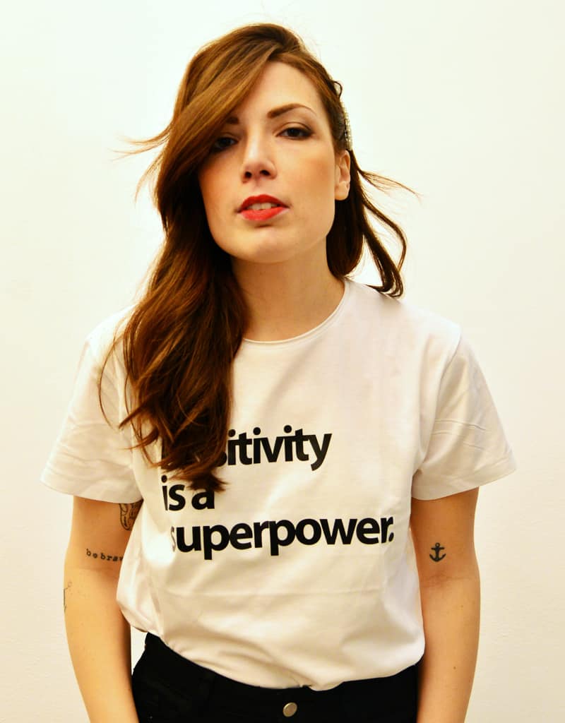 T-shirt mezza manica bianca con scritta nera *Positivity is a superpower*